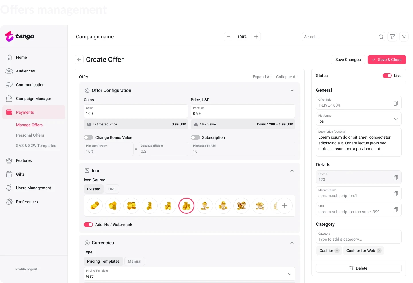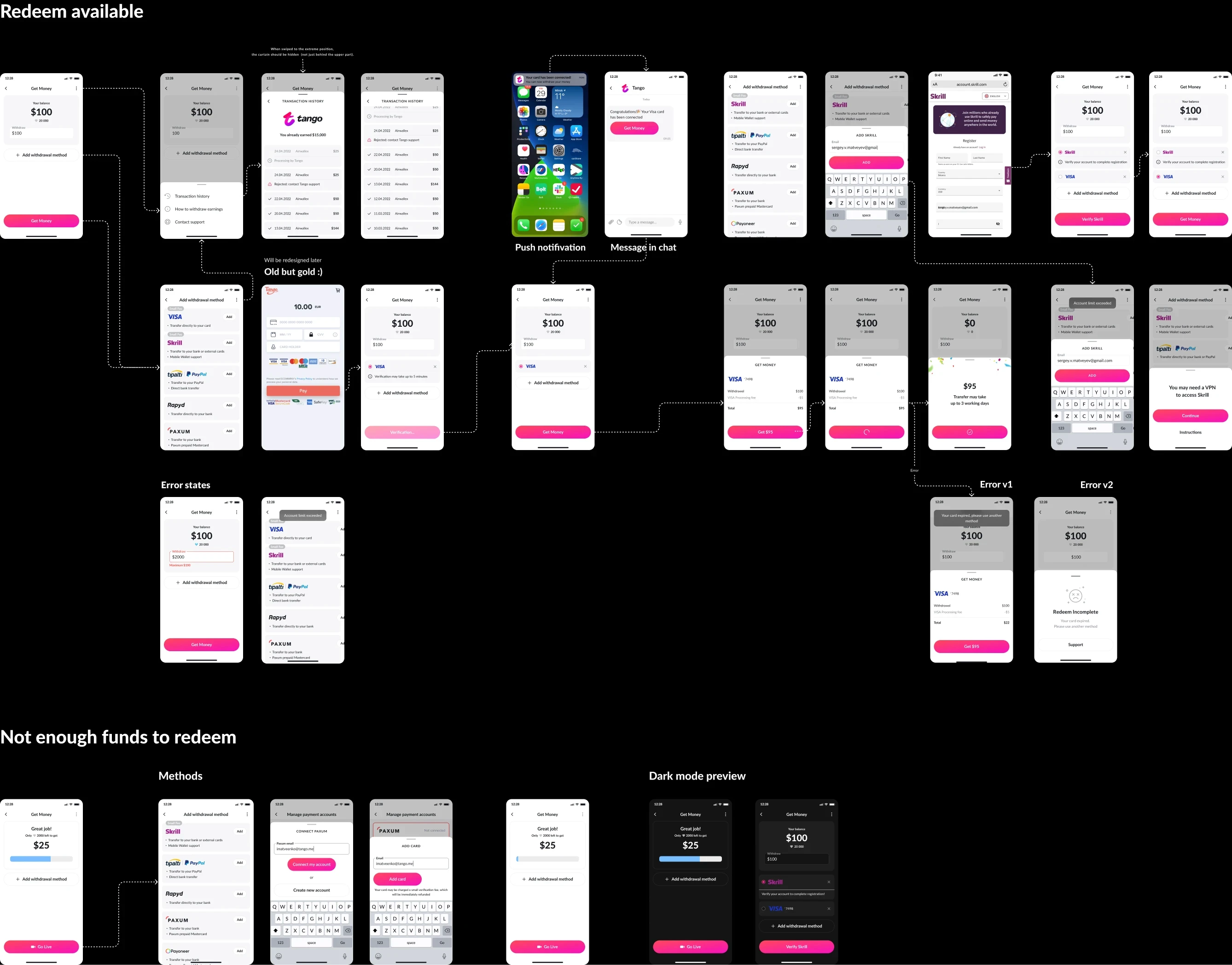 Tango features its own monetization system, requiring a dedicated finance section. Simplicity remains key here too: most newcomers need to withdraw earnings in as few clicks as possible. Users don't care about regulations, restrictions, or technical hurdles.